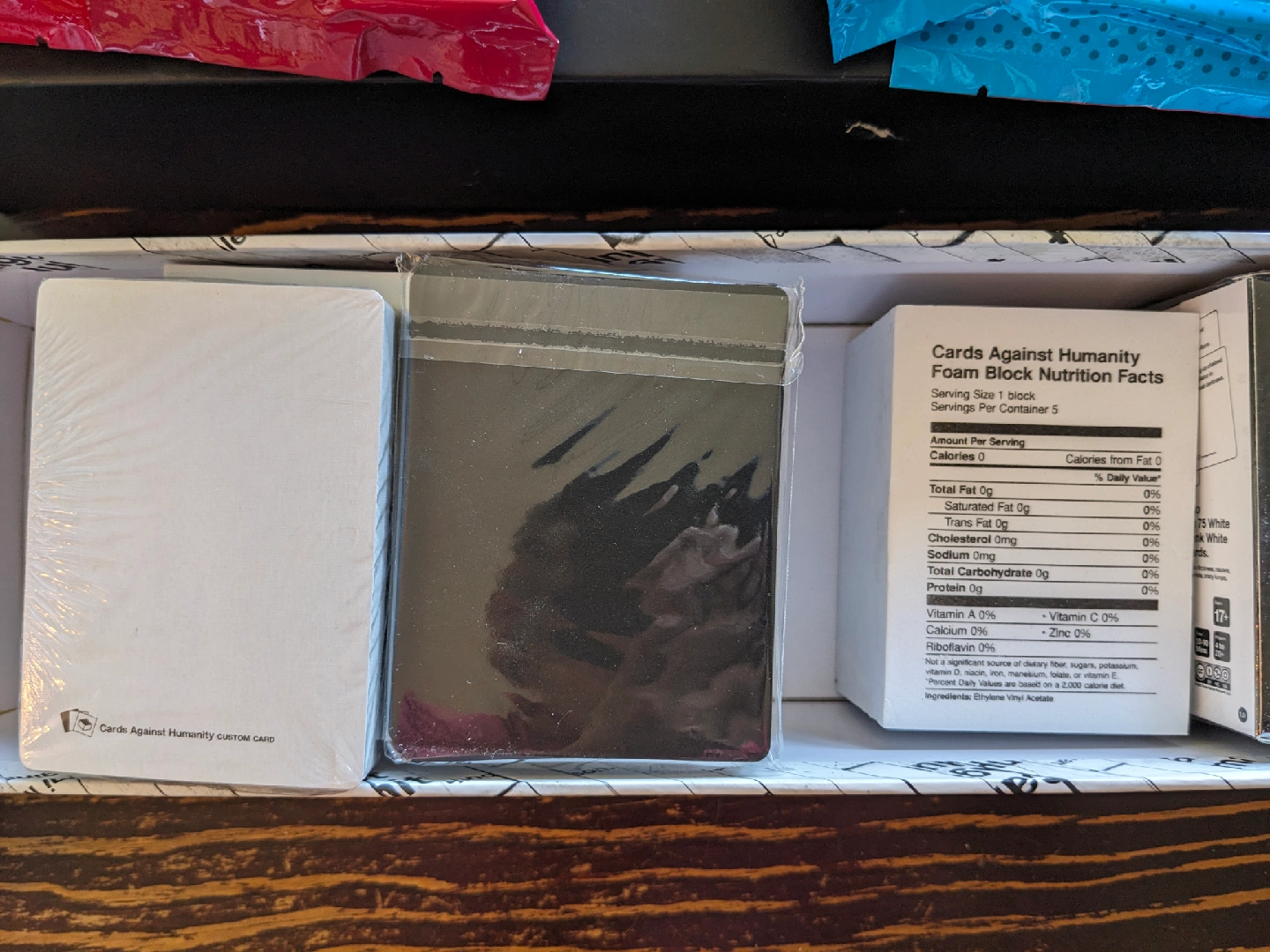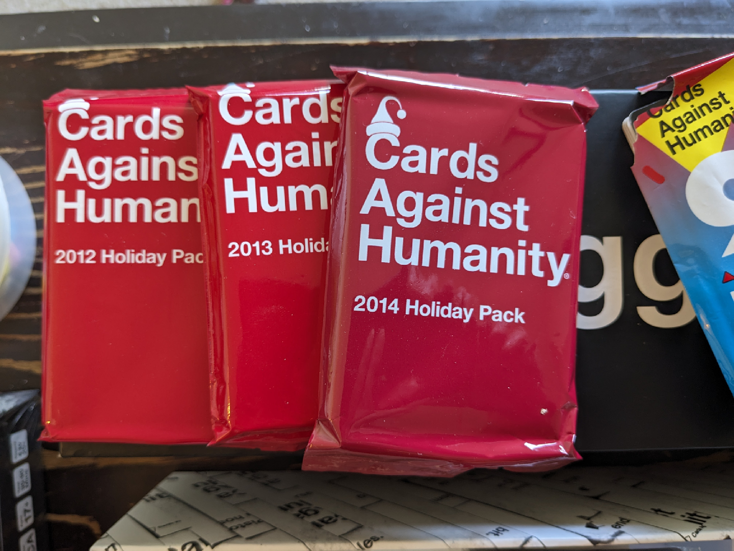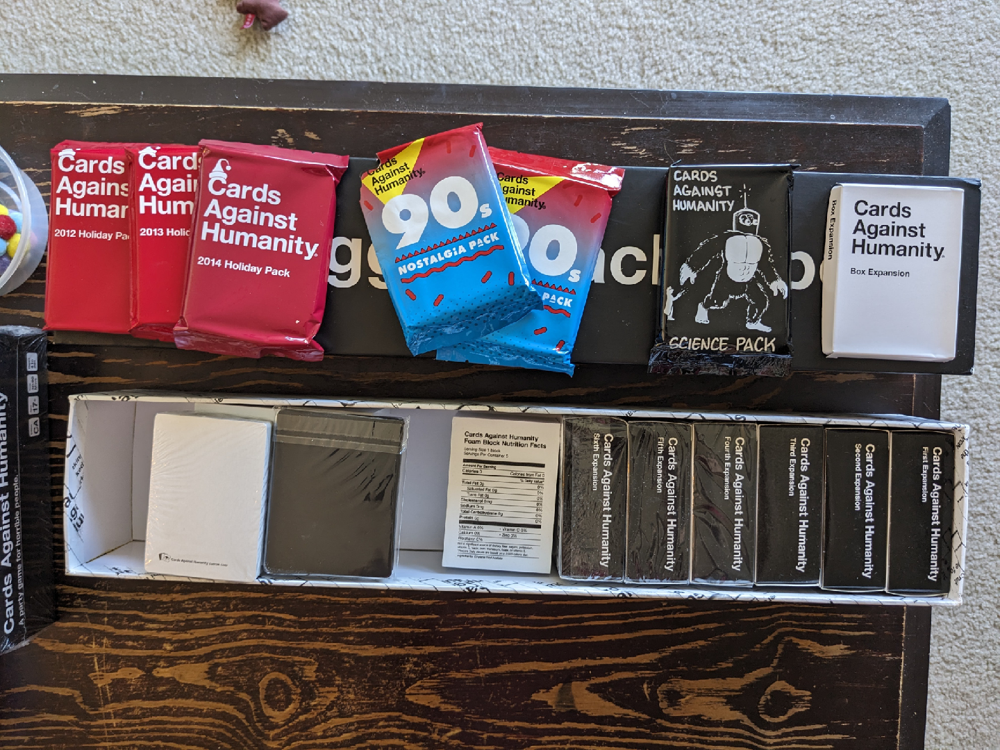 Cards Against Humanity 'Bigger Blacker Box' along with several expansion packs!