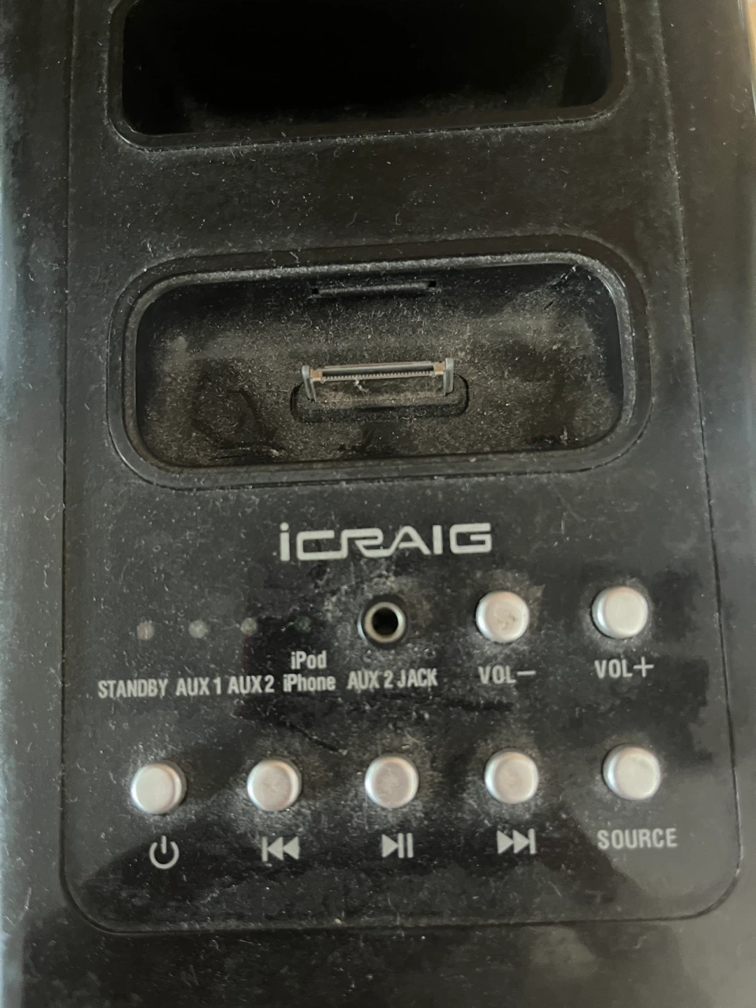 Selling an iCraig tower speaker! It has inputs for iPod, iPhone, and aux cables. It's perfect for playing music in any room