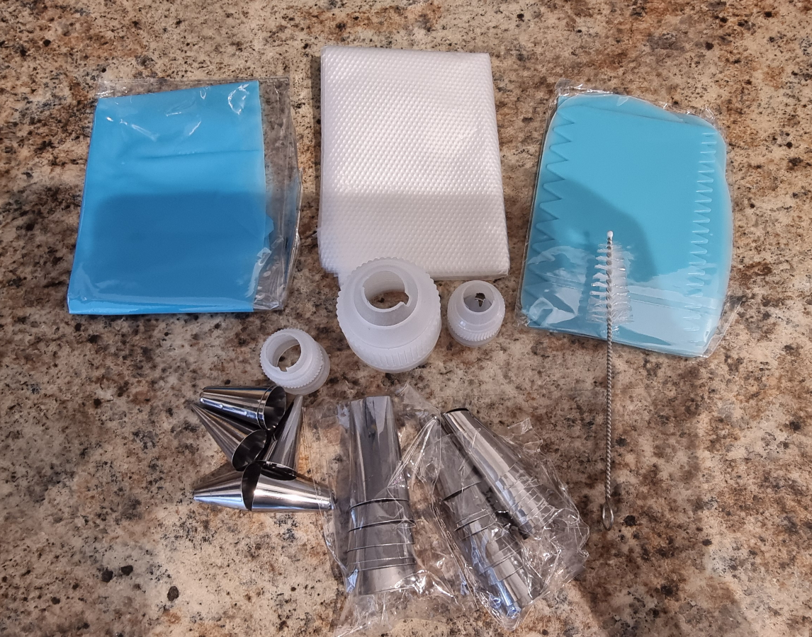 New cake decorating piping tips set! It comes with a variety of tips to make different floral designs and patterns on your cakes and cupcakes.
