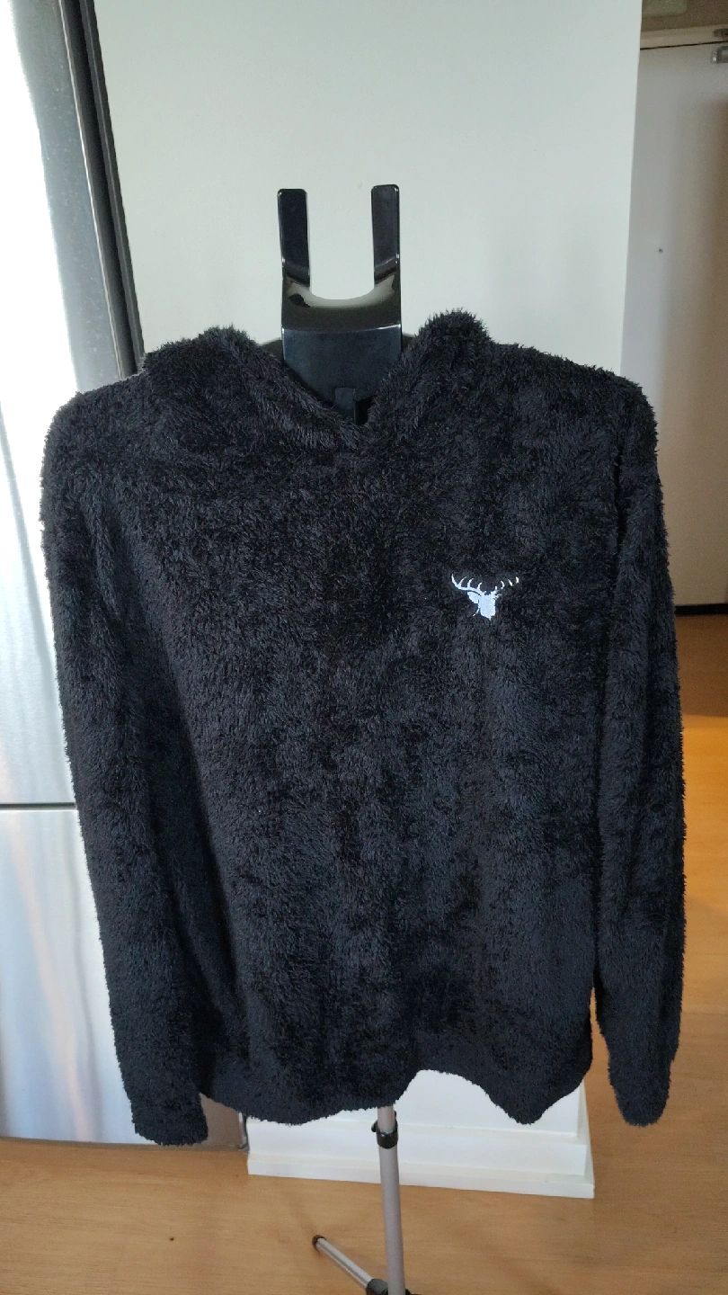 Selling a super cozy fuzzy black hoodie! It has a cute little deer logo on the front. Perfect for chilly days and nights. It's in great condition and ready for a new home!