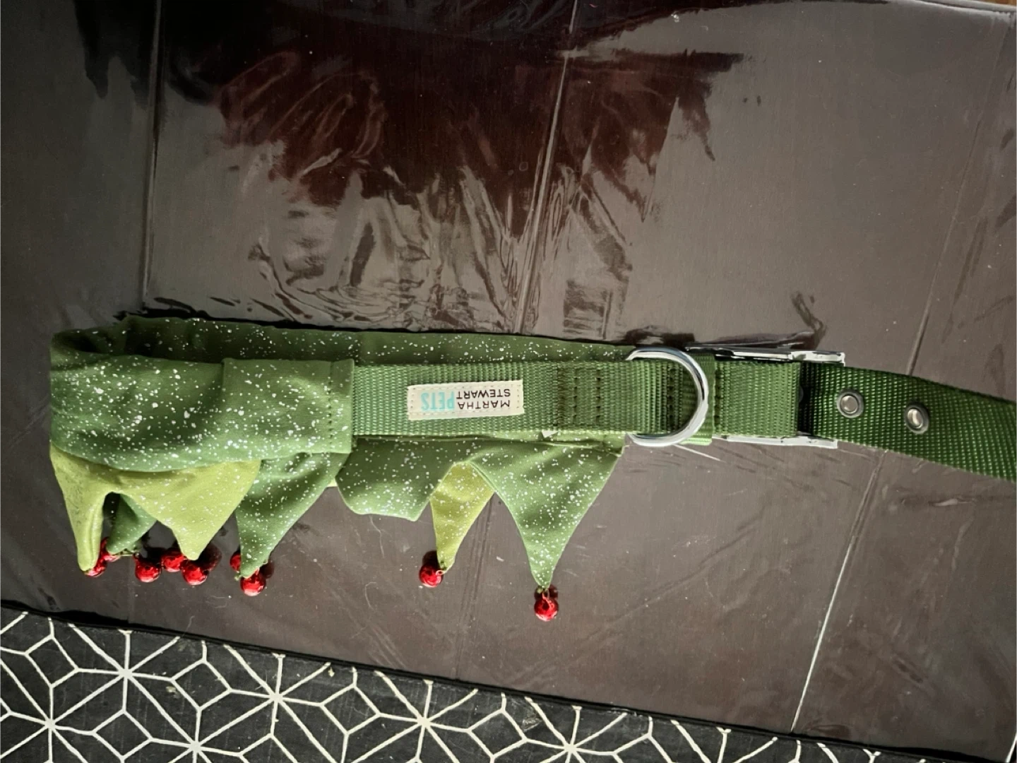 Selling a variety of dog harnesses and bow ties! There's a Dwni harness with a blue bone pattern, a Martha Stewart Pets harness with a Christmas tree design, and a few bow ties with different patterns. Perfect for dressing up your furry friend!