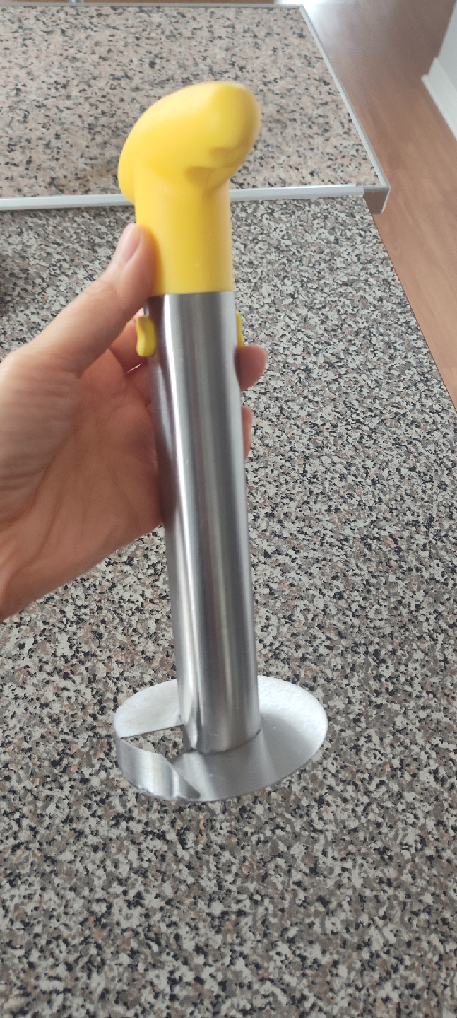 Selling a pineapple corer! It's in great condition and makes coring pineapples super easy. The handle is a bright yellow, so it's easy to spot in your kitchen drawers. It's a handy tool for anyone who loves fresh pineapple.