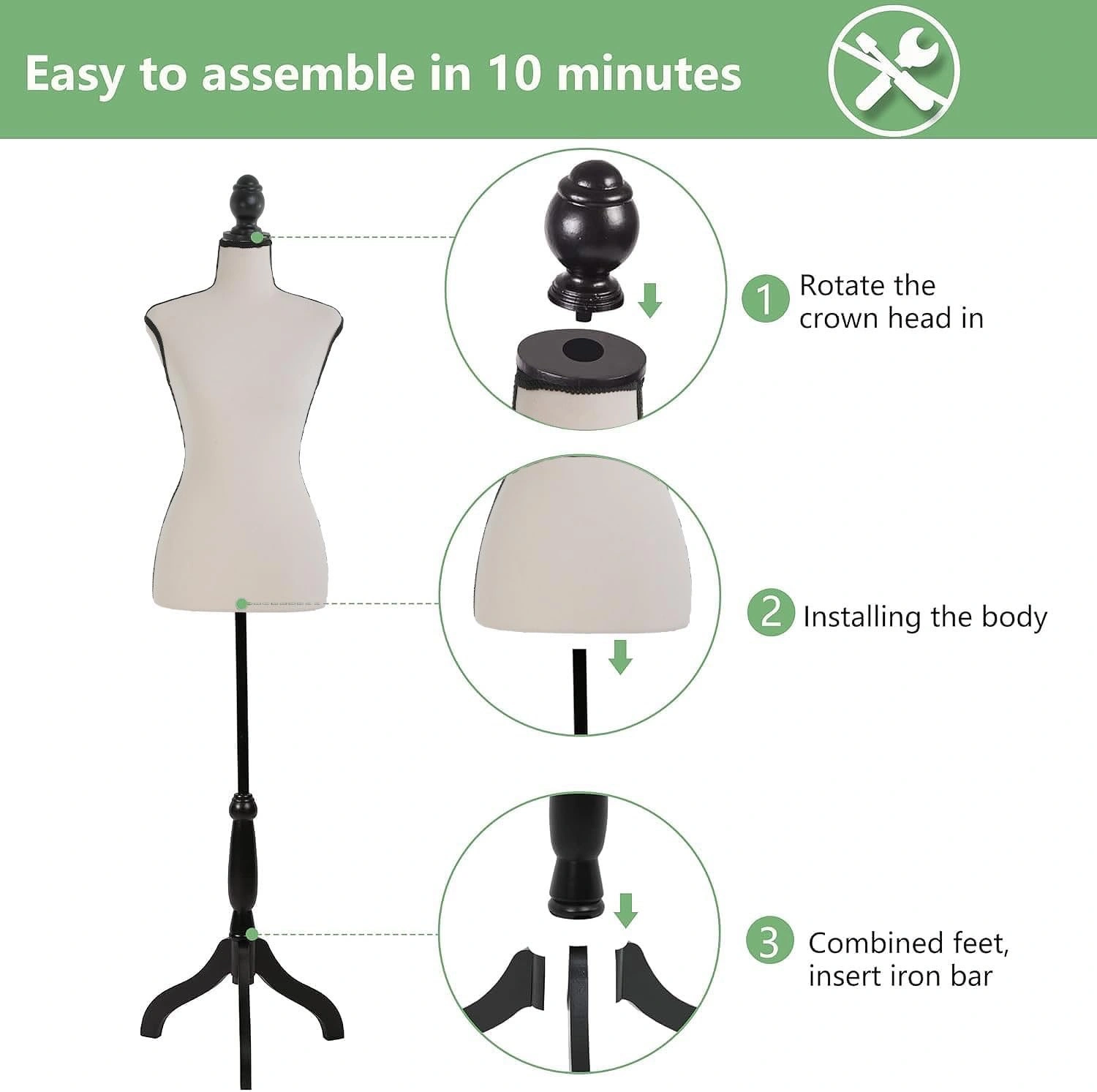 Female Mannequin,Dress Form Torso Manikin with Wooden Tripod Stand, 60-67 Inch Height Adjustable Female Dress Model for Sewing Clothes Jewelry Display (Cream)