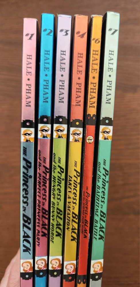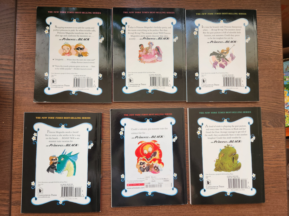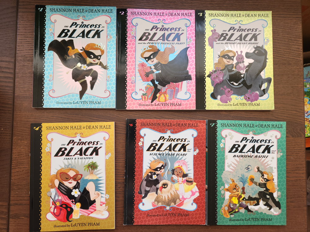Set of six Princess in Black books: #s 1-4 and #s 6-7 (note: we do not have #5). Recommended for ages 5-8.