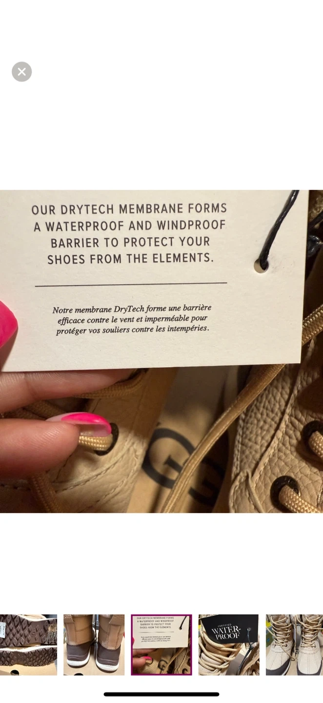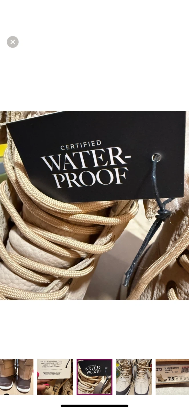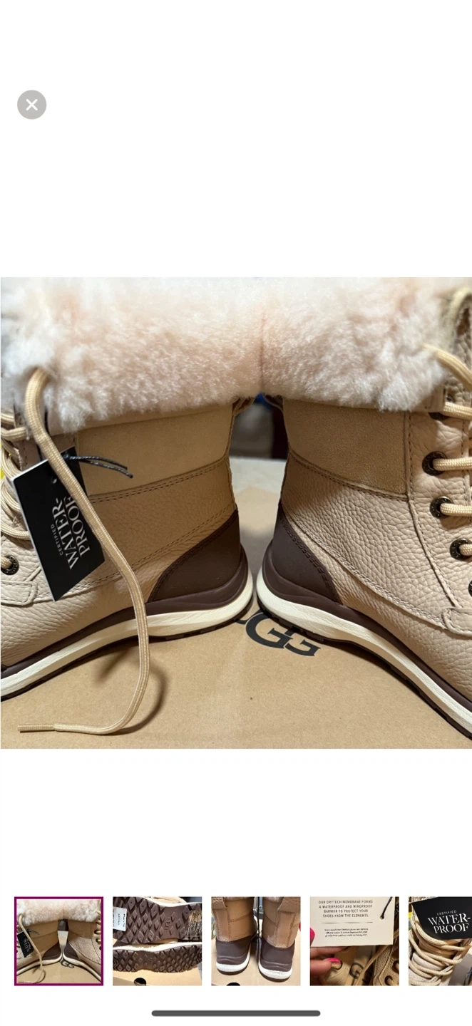 Brand new. Selling a pair of UGG Adirondack III waterproof boots in women's size 7.5! These boots are designed with a DryTech membrane that provides a waterproof and windproof barrier to protect your feet from the elements. They're perfect for keeping your feet warm and dry in cold and wet conditions