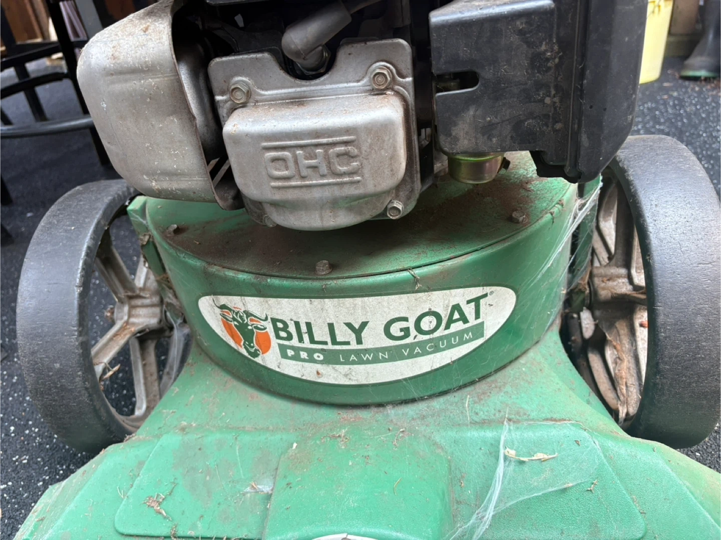 Selling a Billy Goat Pro lawn vacuum. It's green and has a bag attached for collecting leaves and debris. It has an OHC engine. Great for keeping your yard tidy!