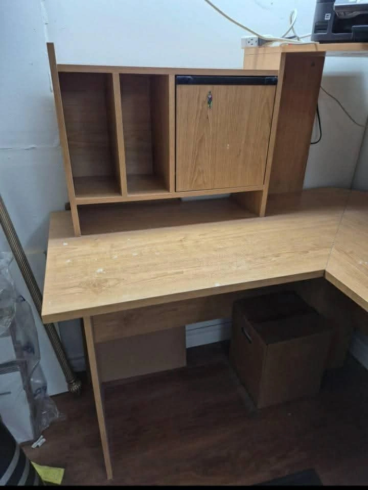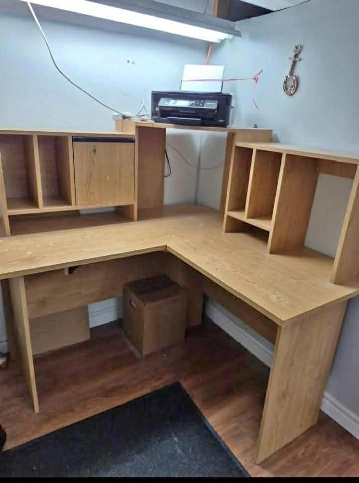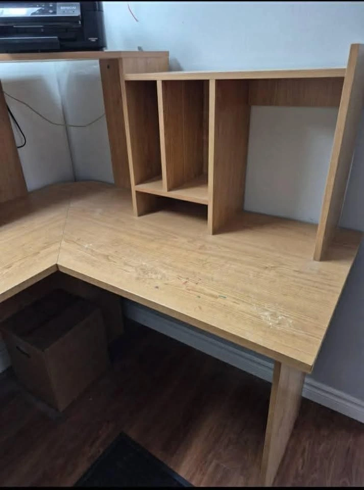 Wooden L shaped desk (disassembled)
