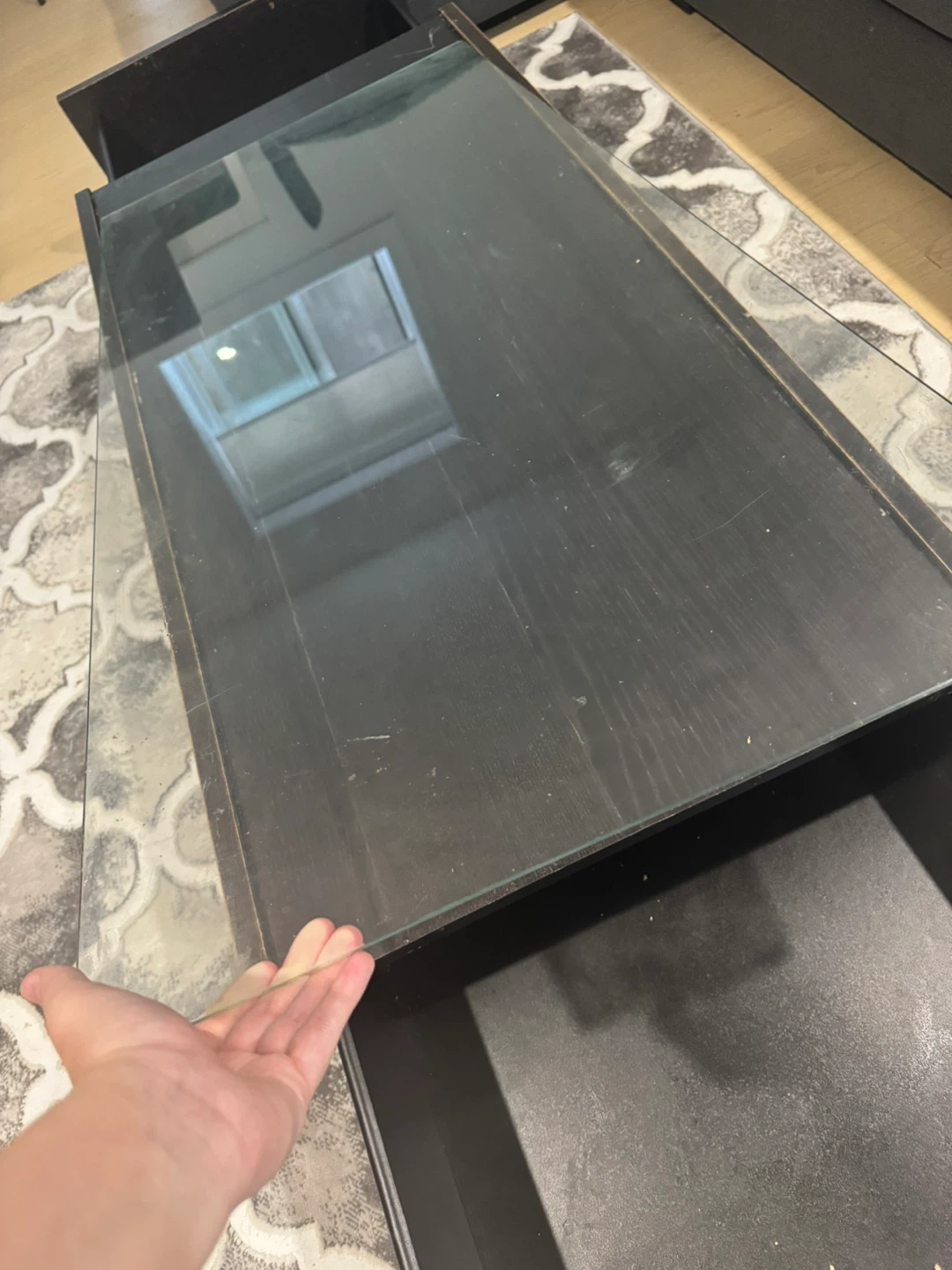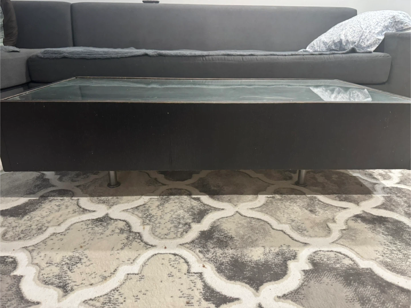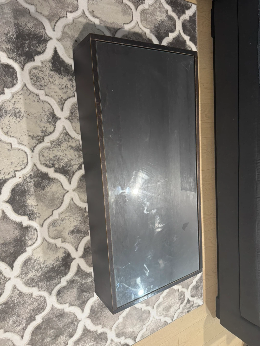 Selling a coffee table with a sleek black finish and a glass top. It also has a drawer for some extra storage. It's in used condition, but still has lots of life left! Glass top is removable if you do not like the look or for easy cleaning . Pickup only by Cresent park . It is heavy so will need 2 people to move it . Not sure measurements unfortunately