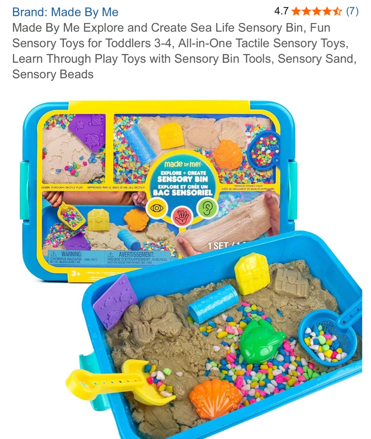 Explore and create with this Made By Me Sea Life Sensory Bin! It's a fun, all-in-one tactile sensory toy designed for toddlers aged 3-4.