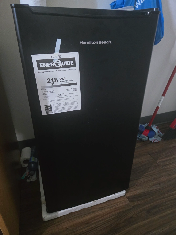 Selling a Hamilton Beach compact fridge in black. It's perfect for small spaces like dorm rooms or offices. It's in great condition and ready to keep your snacks and drinks cold!