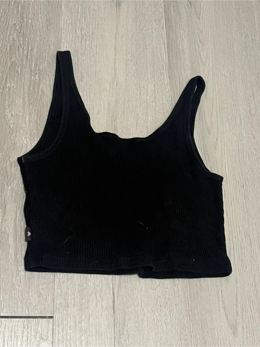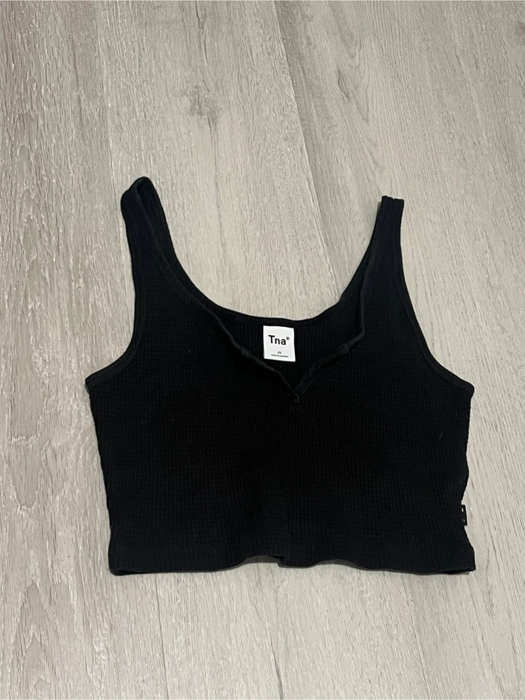 15Selling a TNA black cropped tank top in size XS. It's in great condition and perfect for summer! The material is comfortable and the style is super versatile. A great addition to any wardrobe *Pet friendly, Smoke free home*