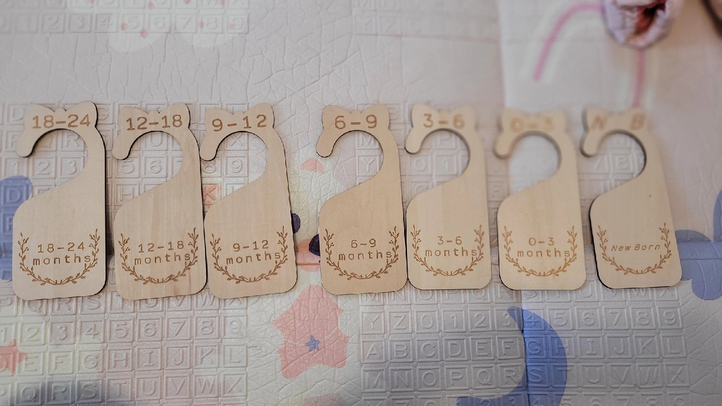 Keep your little one's closet organized with these adorable wooden baby closet dividers! They range from newborn to 24 months, making it easy to sort and find the right size. Perfect for a new nursery or a baby shower gift!