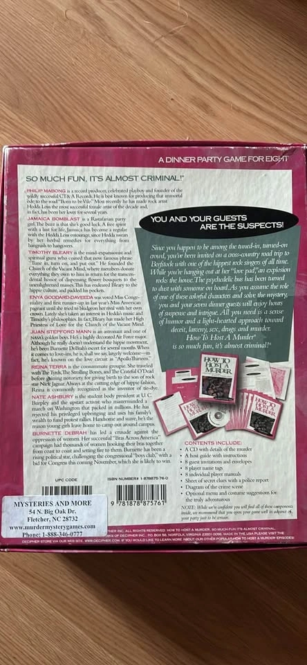 Buy & SellHow to Host A Murder GameHow to Host A Murder Game$10Murder mystery dinner party game for 8 players Browns Line and Horner AveWHERE TO MEETCheck LocationView MapSELLERAdamAlderwood100 reviews0 chats·0 favorites·1 viewsSEND CHAT TO SELLERHi Adam! I’m interested in your listing.Hi Adam! I’m interested in your listing.Get the Karrot app to chatSign In to chat