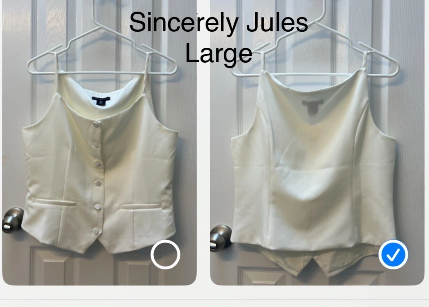 Selling a cute white vest from Sincerely Jules in size large! It features a button-down front and a tailored fit. Perfect for layering or wearing on its own!