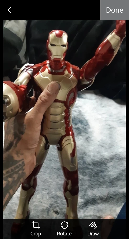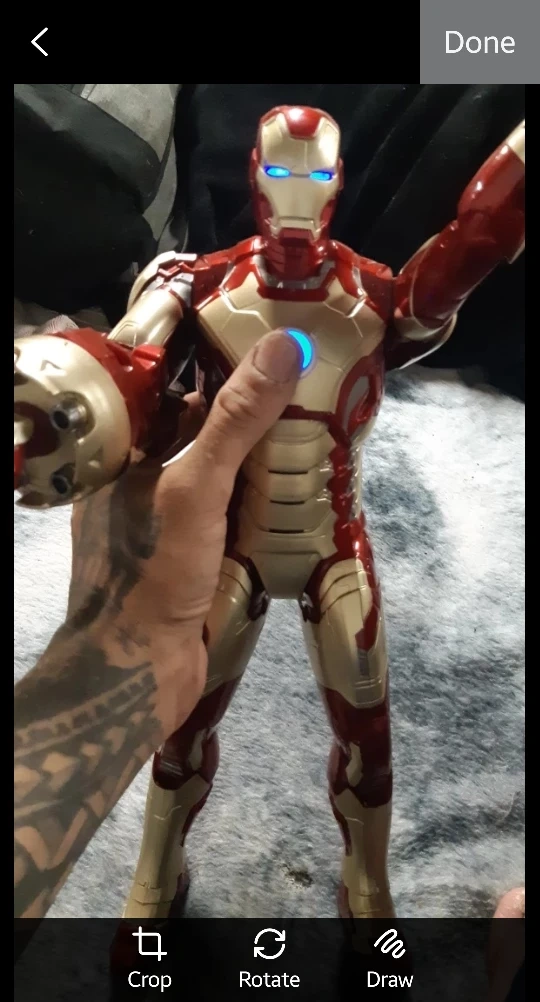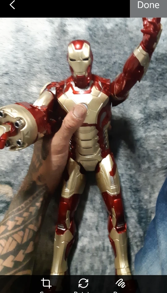 111Selling an Iron Man action figure. It's in great shape and would be perfect for any Marvel fan! The colours are a nice mix of red and gold. It also has a light up feature on the chest.