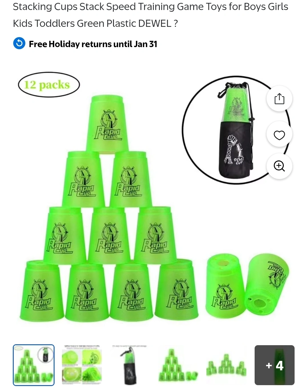 Stacking Cups Stack Speed Training Game Toys for Boys Girls Kids Toddlers Green Plastic DEWEL