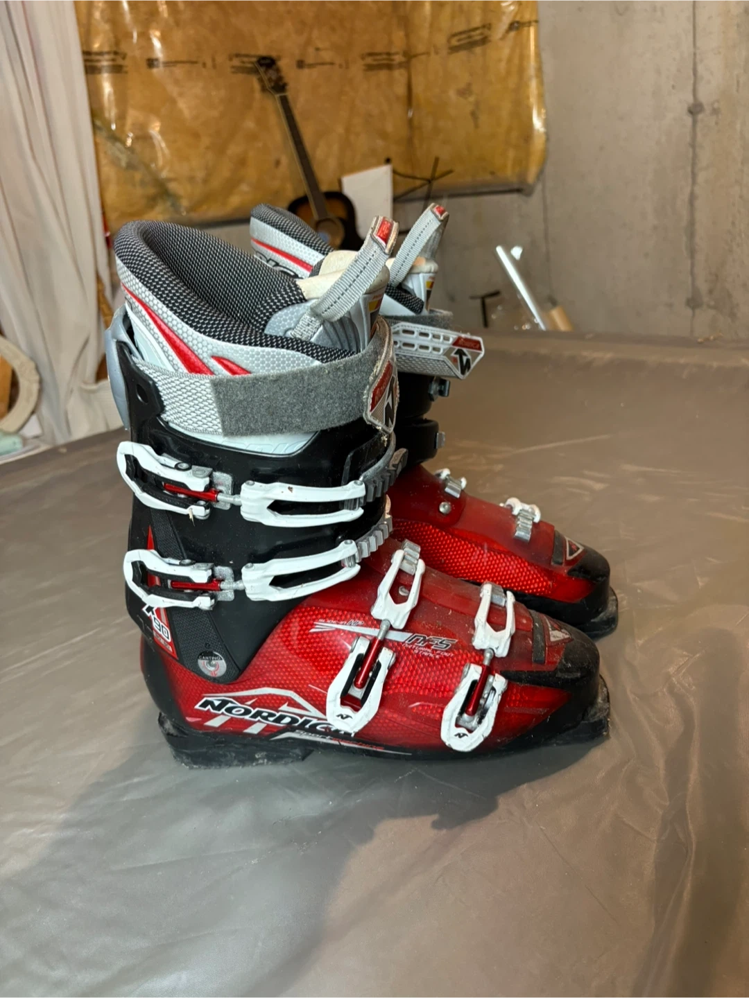 10Selling a pair of Nordica X-90 ski boots size 10 in red and black. They show some signs of use, but are still in good working condition. Perfect for hitting the slopes!