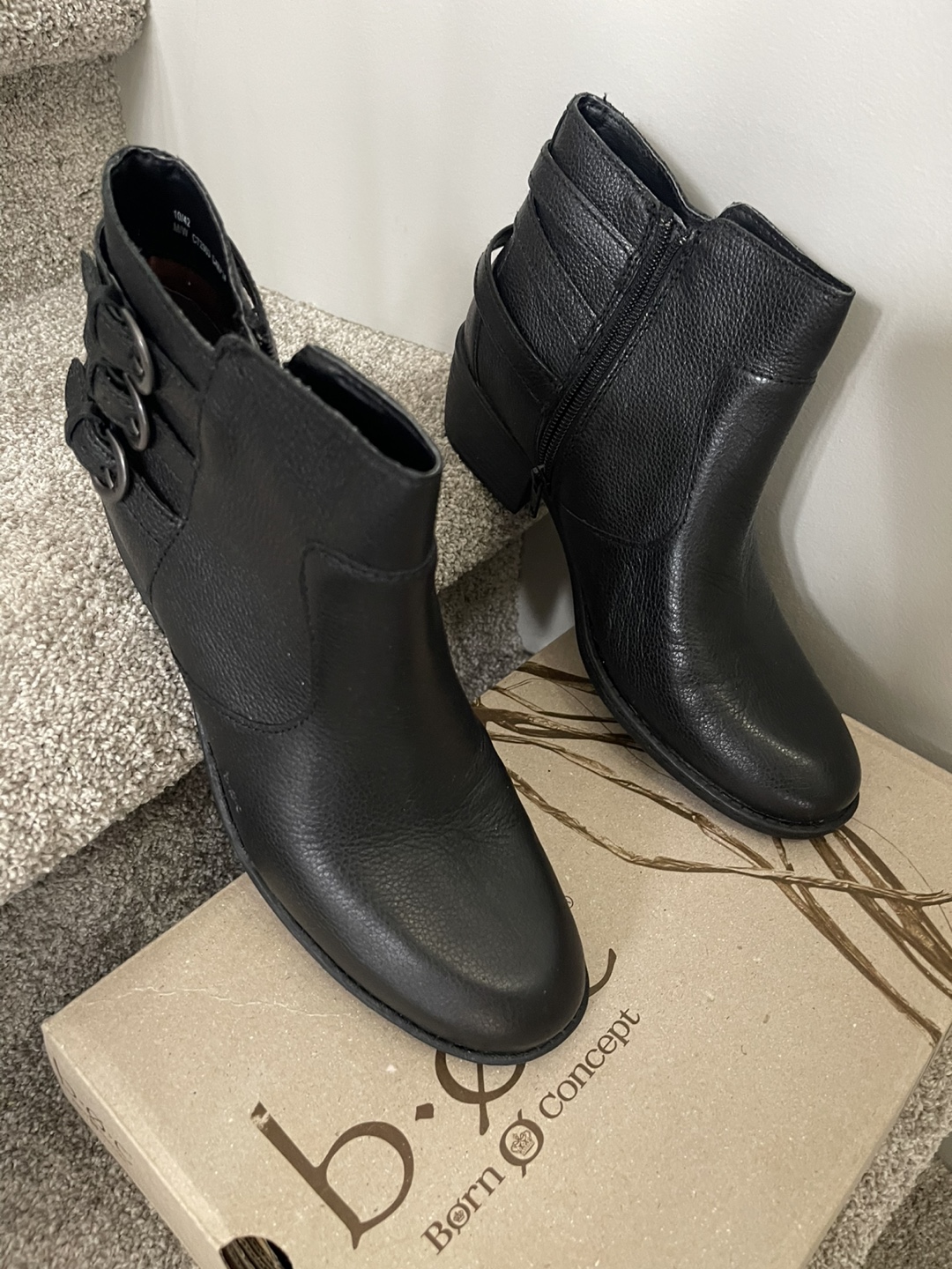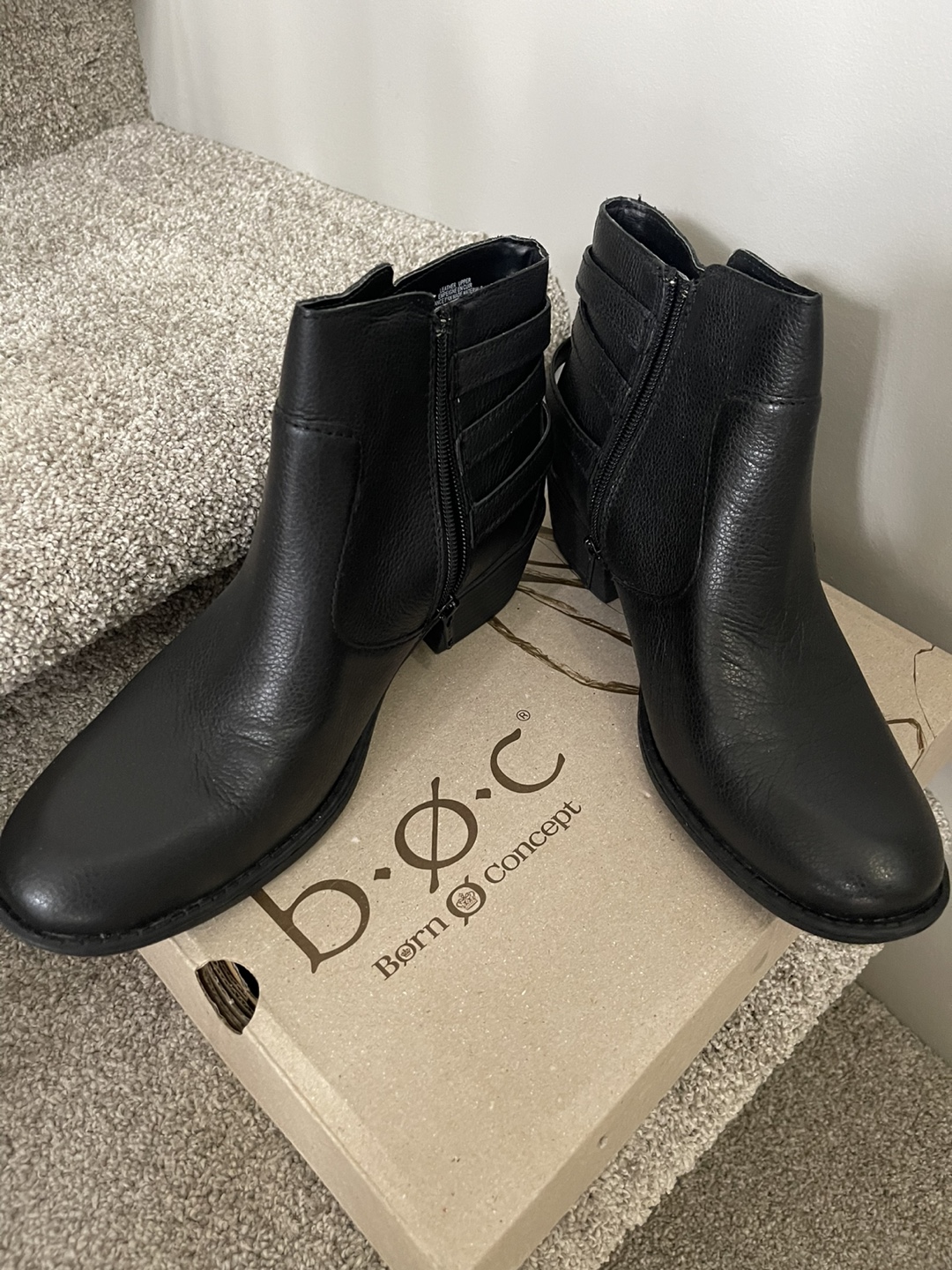 Selling a pair of BOC (Born Concept) leather black ankle boots - the size is
