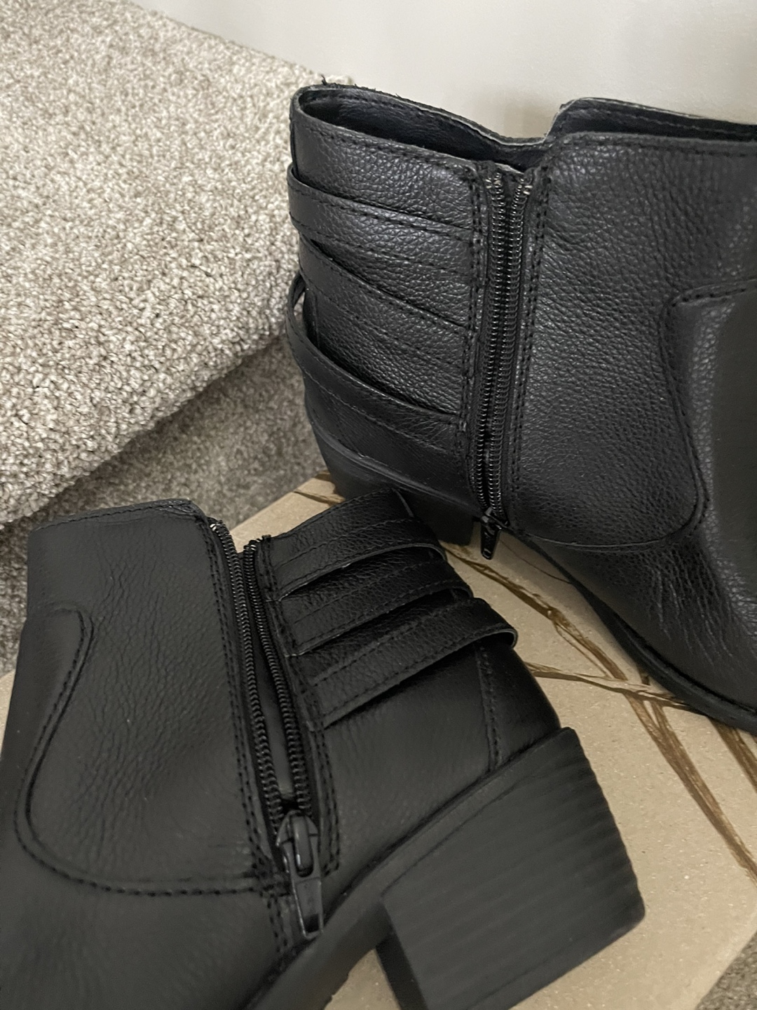 10 M/W. These boots feature a stylish design with a side zipper and three decorative buckles. The heel is 5 cm high. They have never been worn and come in the original box! Original price is 170.00 + 8.50 = 178.50.