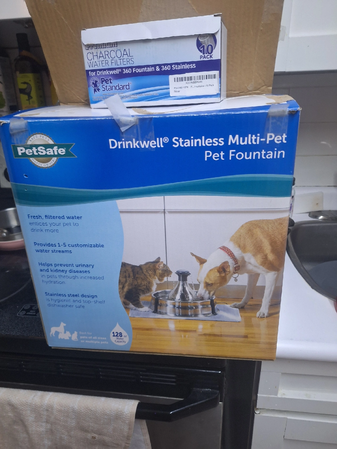 Keep your furry friends hydrated with this PetSafe Drinkwell Stainless Multi-Pet Fountain! It provides fresh, filtered water to entice your pet to drink more. The fountain has a stainless steel design that is hygienic and top-shelf dishwasher safe. It's best for pets of all sizes or multiple pets and has a 128 oz water capacity. Also included are charcoal water filters for the Drinkwell 360 Fountain & 360 Stainless.