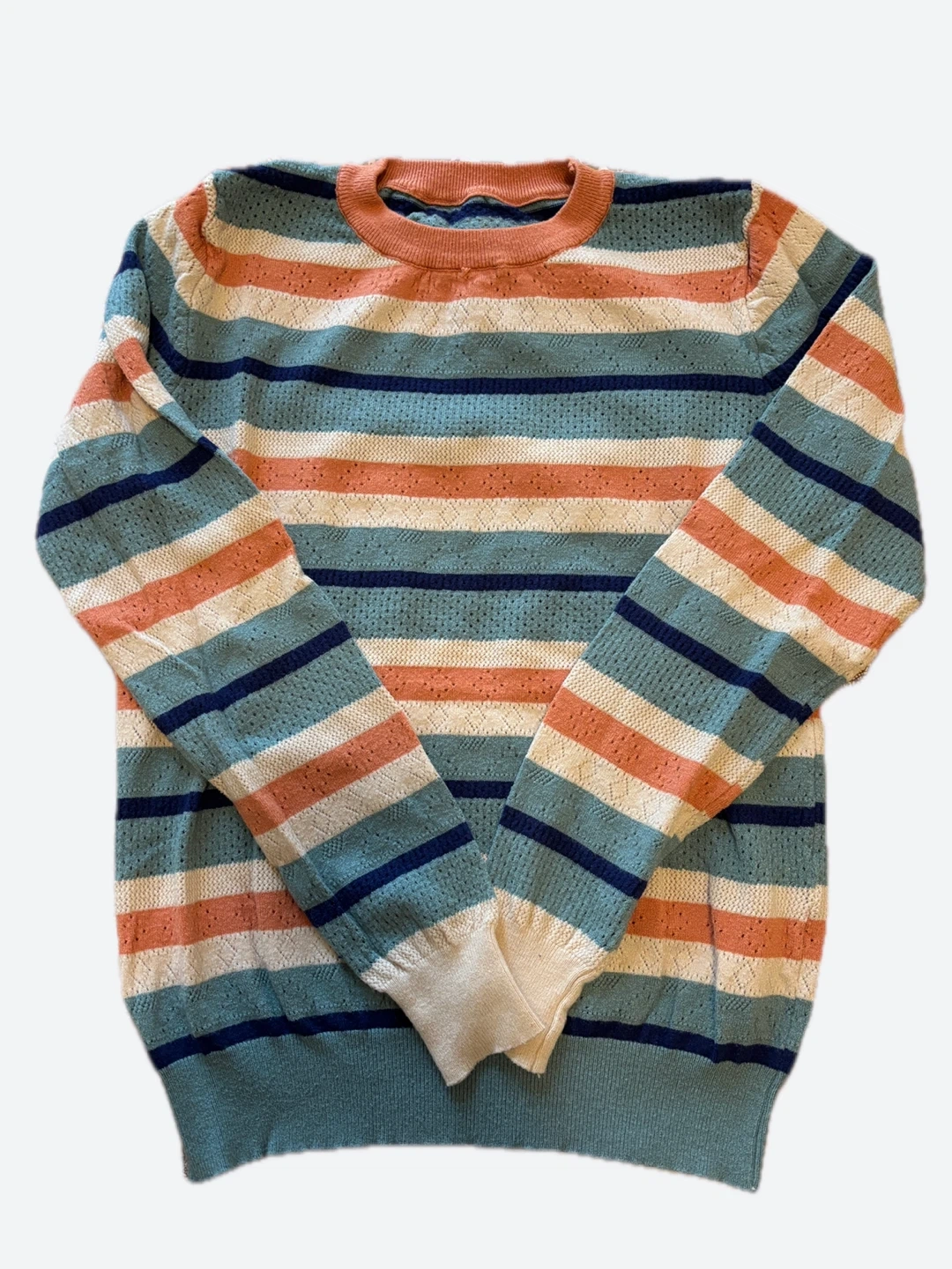 Buy & SellVintage Striped Knit SweaterVintage Striped Knit Sweater$7Vintage knit sweater. Blue, peach, and cream stripes Size MConditionGoodSizeMBrandVintageWHERE TO MEETEau ClaireView MapSELLERverifiedReggieEau Claire831 review1 chats·1 favorites·17 views