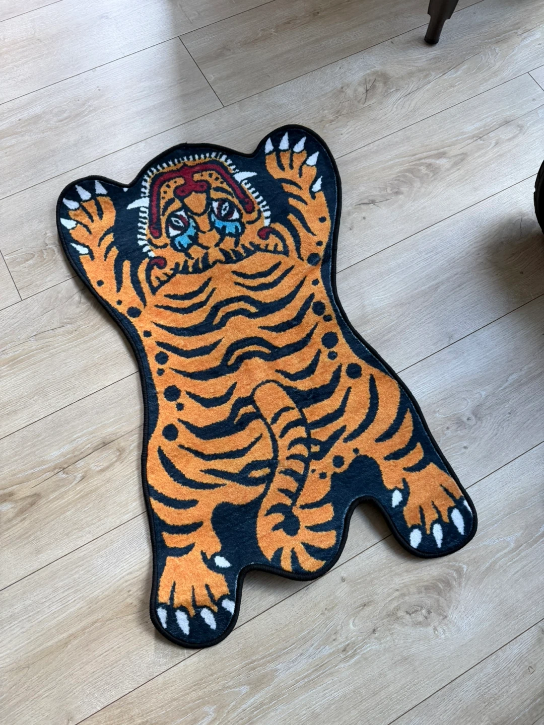 Selling a fun tiger-shaped rug! It features a cool orange and black tiger stripe design with a unique character face. Perfect for adding a bit of personality to any room!