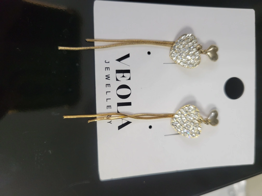 Cute heart dangle earrings from VEOLA Jewellery! These earrings feature a heart design with sparkly accents and delicate gold-tone chains. Perfect for adding a touch of sparkle to any outfit