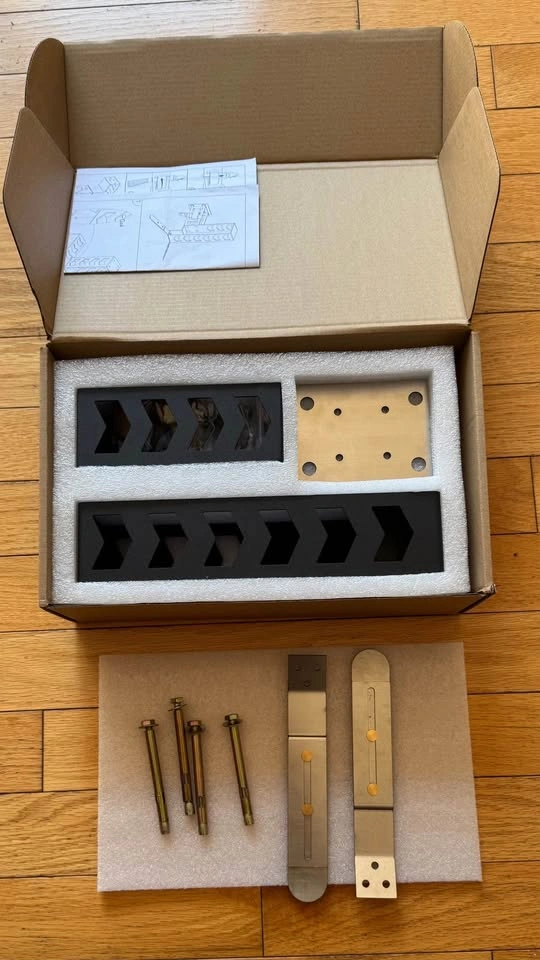 Brand new in box, unused. Wall mount for motorcycle riding gear - helmet, keys, gloves, and jacket. 100lb load bearing, and includes heavy duty expansion bolt anchors.