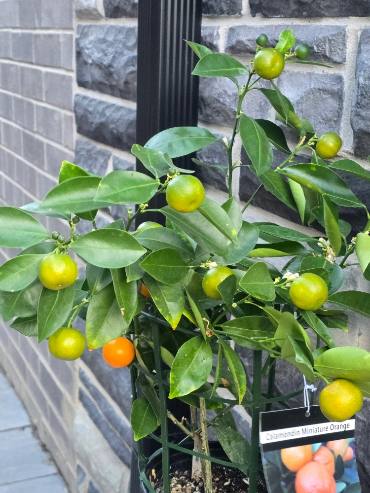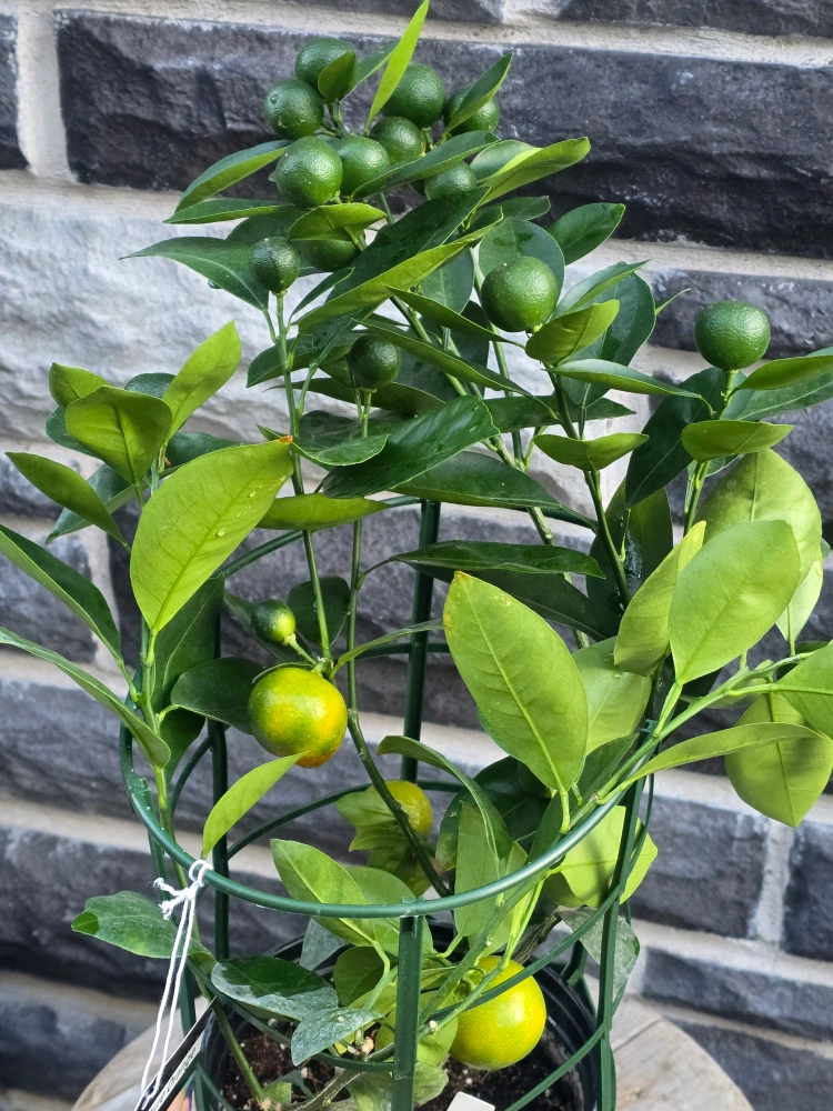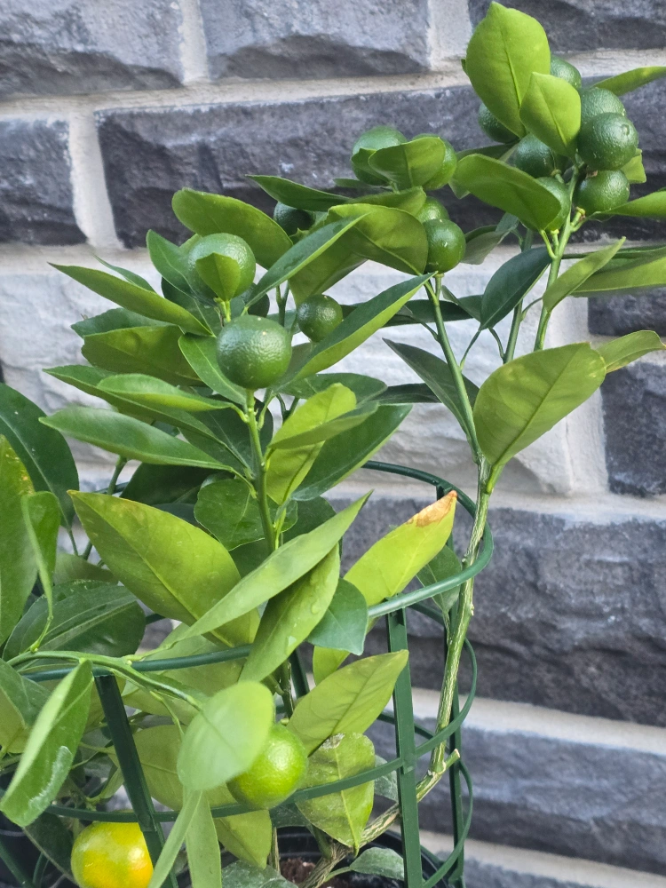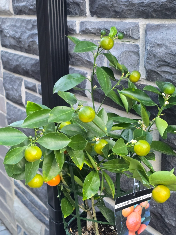 257Selling a lovely Calamondin Miniature Orange Tree. It's a beautiful little plant that will add some greenery to your space! The plant has small, unripe green oranges on it, with a few turning orange. It's in good condition and ready for a new home