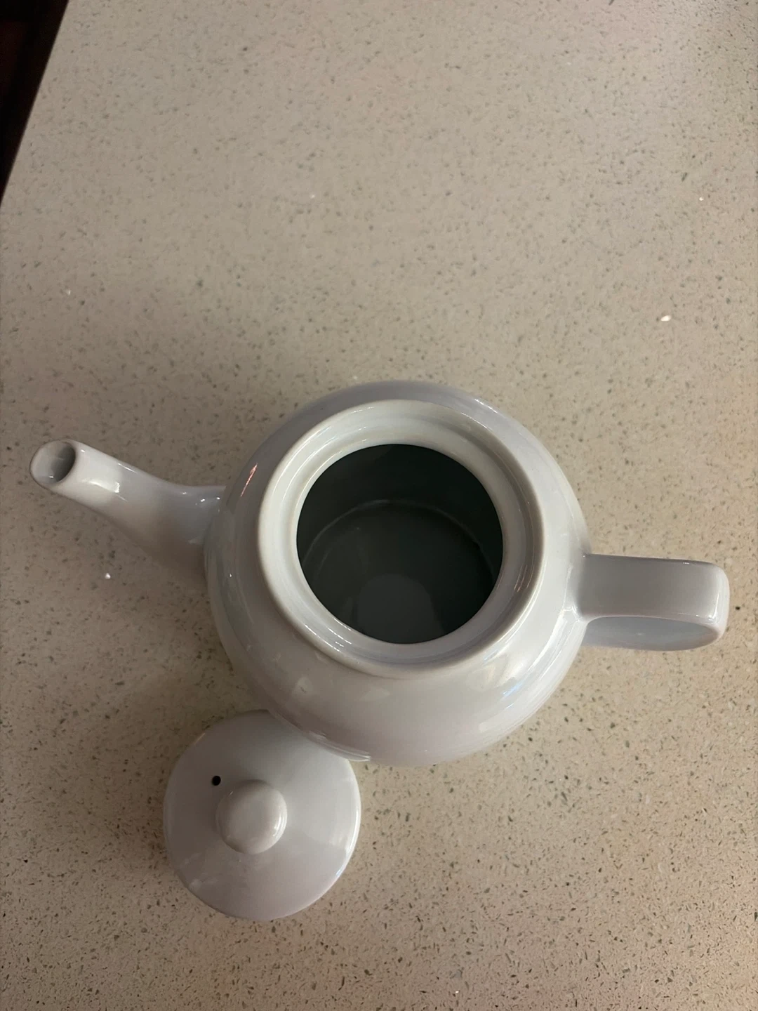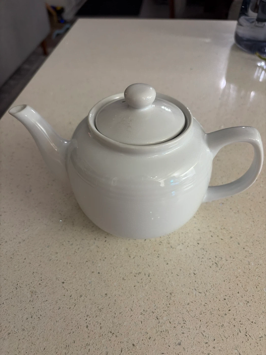 Here's a lovely white ceramic teapot! It's in great condition and perfect for brewing your favourite cup of tea. It's a classic design that would look great in any kitchen