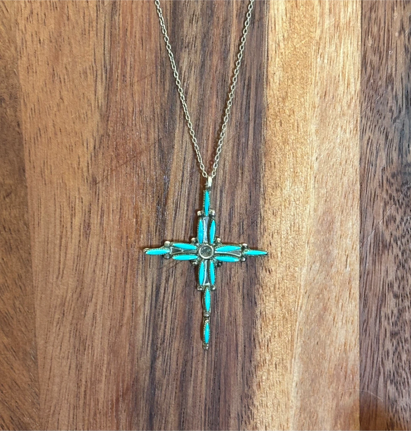 Vintage handmade Zuni Pueblo Turquoise Cross