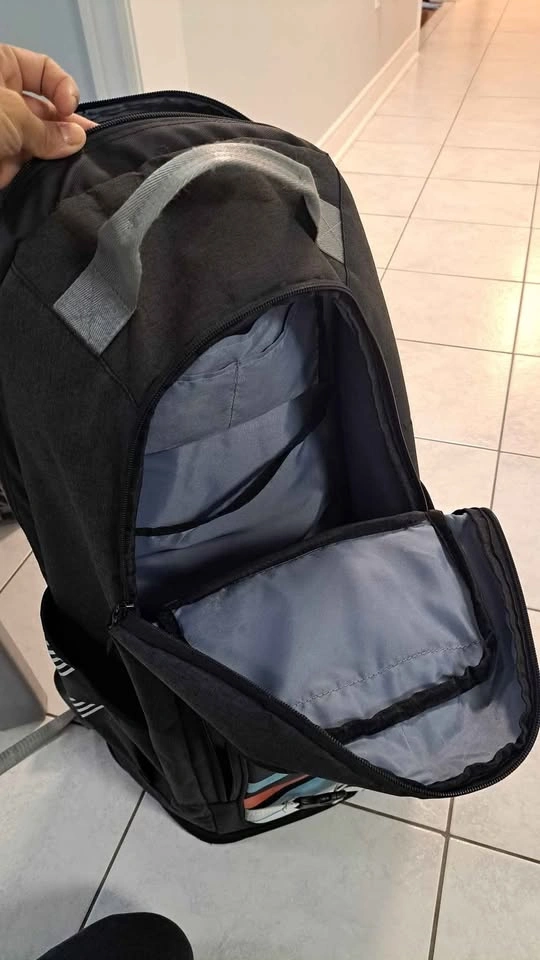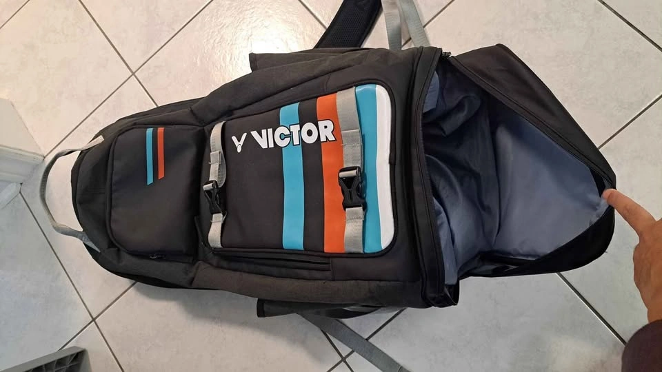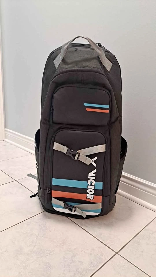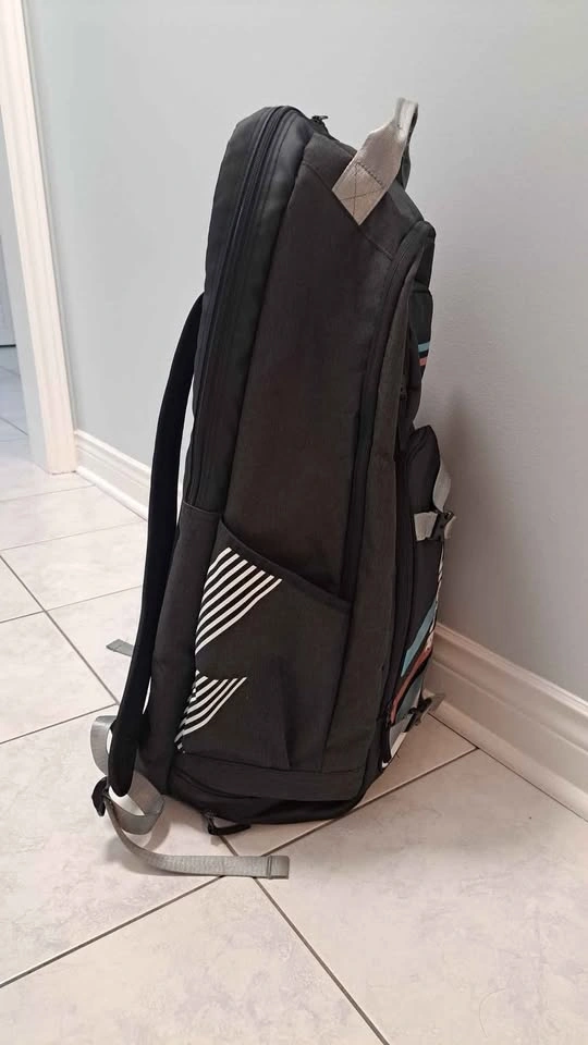 Used like New From a pet free and smoke free environment. Material: Polyester Features: 1. Racket Compartment 2. Shoe Compartment 3. Double shoulder straps 4. Double side pocket for water bottle 5. Functional front pouch for accessories 6. Air back panel