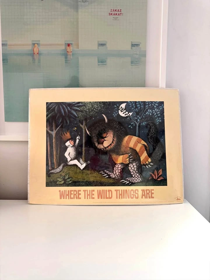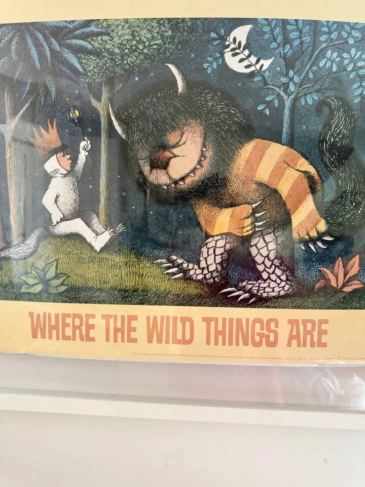 RARE FIND! Brand new, sealed vintage poster of Maurice Sendak's classic, Where the Wild Things Are. Features the famous image of Max and the Wild Thing. Dimensions: 18” x 24” Artist: Maurice Sendak Publisher: Peaceable Kingdom Press (Berkeley, California) Copyright Date: Poster 1997 (Original book 1963) Condition: Sealed in original plastic wrap. Excellent, near-mint condition. A fantastic piece of children's literature art for a nursery, library, classroom, or collector. Porch pick up Christie St and St. Clair West Ave (10 min walk from St. Clair WEST Subway station). Cash only