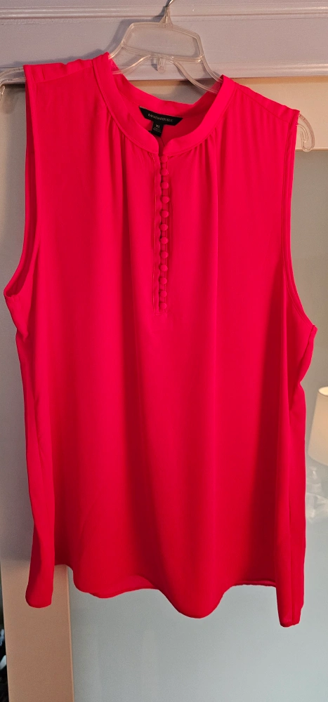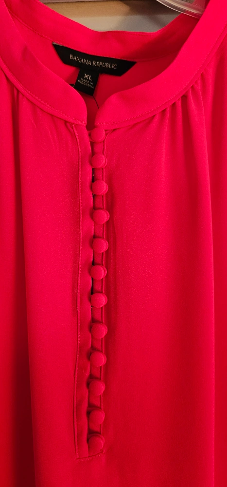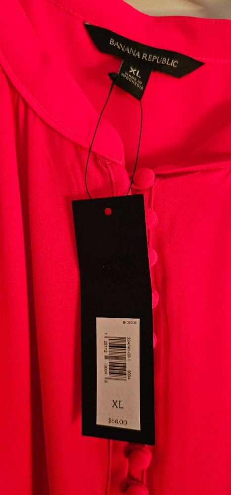 60Banana Republic pink blouse in size XL! It's made of 100% polyester. Originally bought for $68