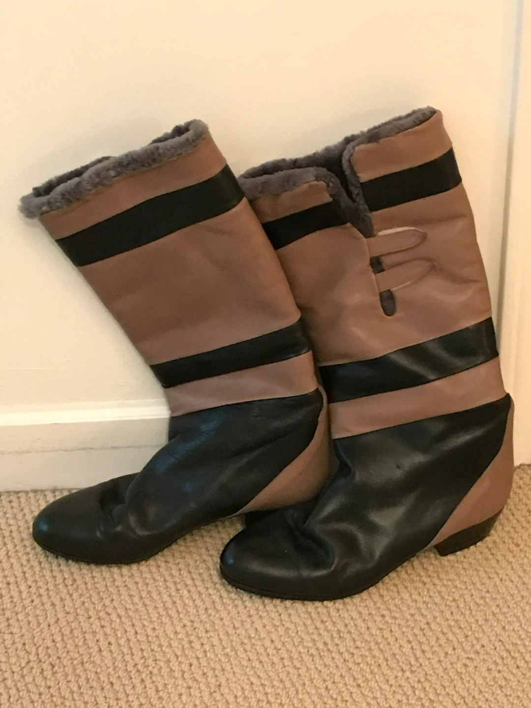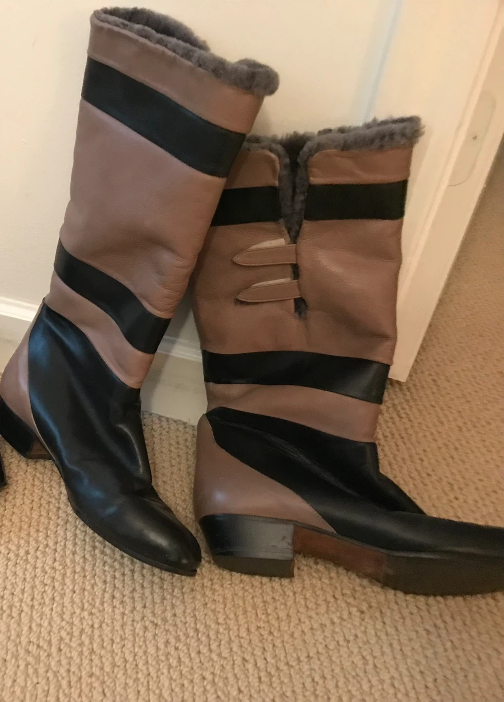 15Stylish pair of winter boots in grey and black leather! They have a cozy faux fur lining to keep your feet warm during the colder months. Perfect for adding a unique touch to your winter wardrobe. Worn only 2 times so in perfect condition. It’s a 5.5 size , you can try before deciding. Feel free to check my other listings.
