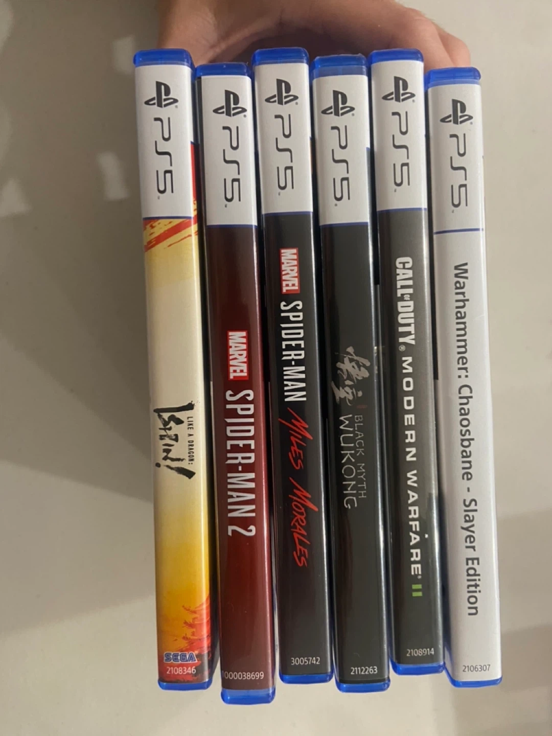 127Selling a collection of PS5 games. Titles include: - Like a Dragon: Ishin! - Marvel's Spider-Man 2 - Marvel's Spider-Man: Miles Morales - Black Myth: Wukong - Call of Duty: Modern Warfare II - Warhammer: Chaosbane - Slayer Edition Bundle deal: 320 Sold everything except like a dragon and warhammer, $70 for the 2.