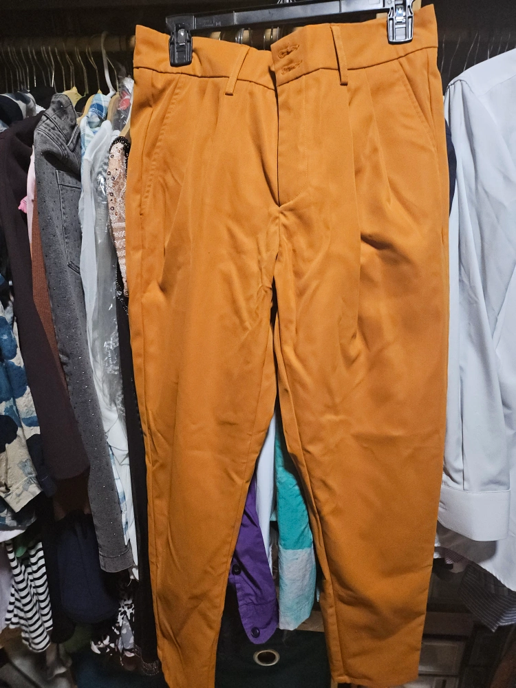These orange pants are in great condition and ready for a new home! They have a classic design and a comfortable fit, perfect for everyday wear