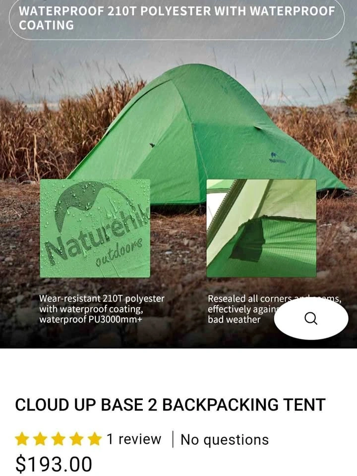 Naturehike Upgraded Cloud Up 2 Person Tent Backpacking Tent Camping Tents for 3 Season Lightweight Tents for Camping & Hiking