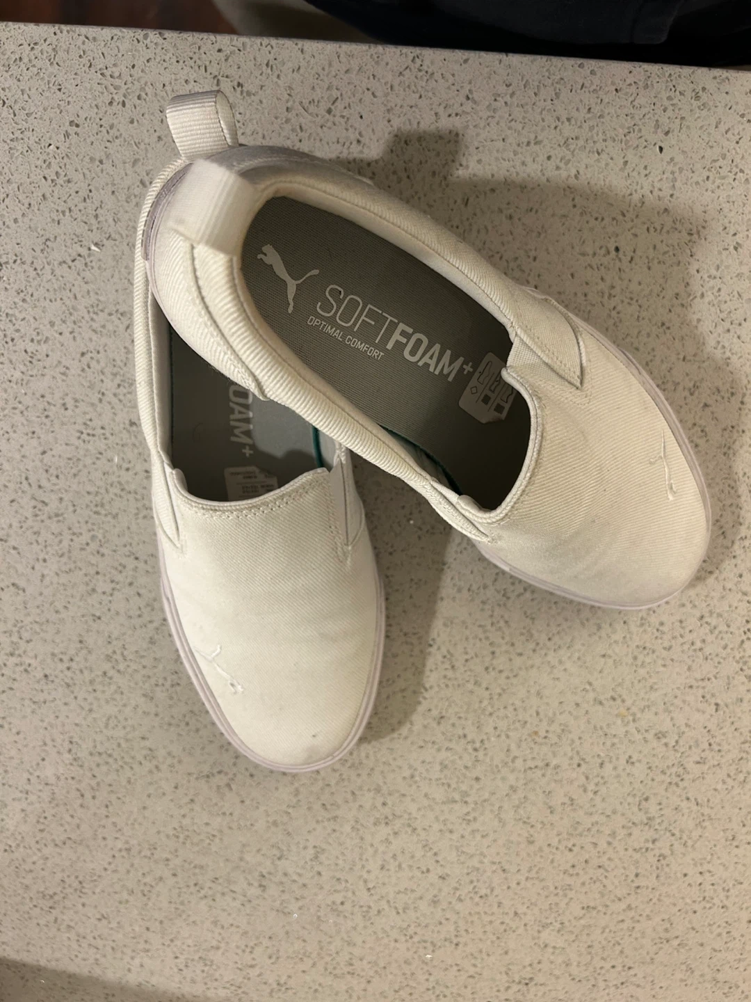 10Selling a pair of Puma SoftFoam+ slip-on shoes in white! They're in great condition and super comfy for everyday wear. The size is US 9 They feature Puma's SoftFoam+ technology for optimal comfort.