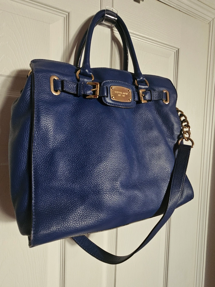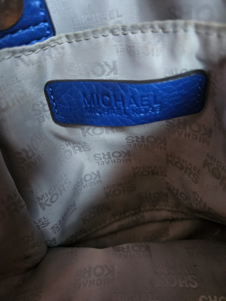 Gorgeous, unique Michael Kors bright blue bag with gold hardware. Bag also has small gold feet.