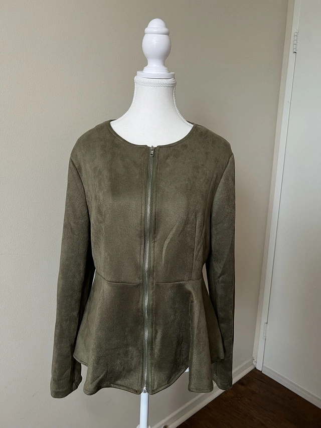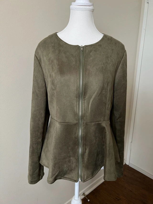 Stylish olive green peplum jacket.