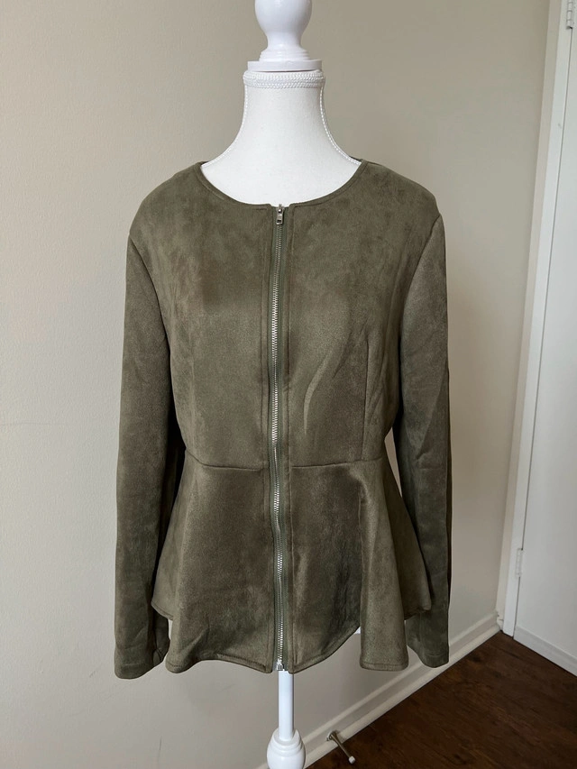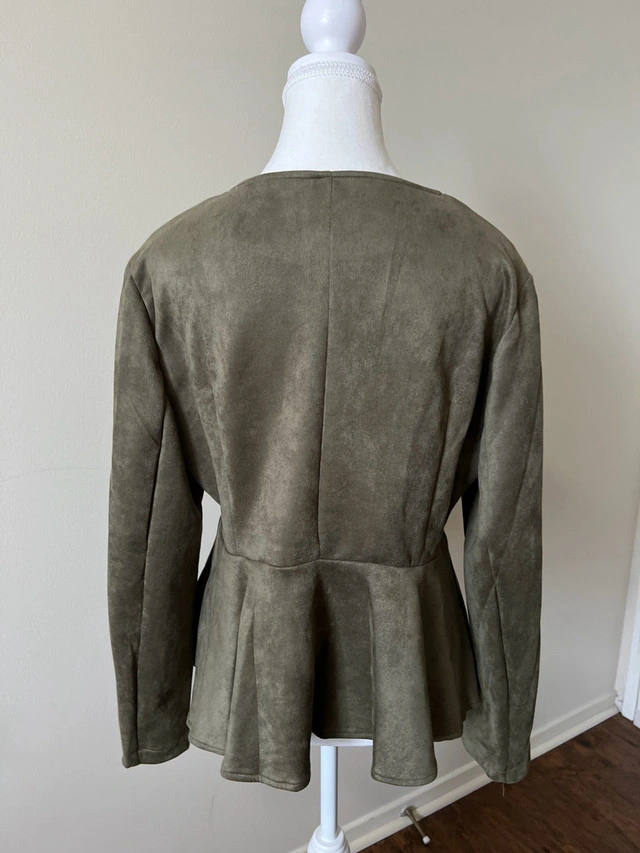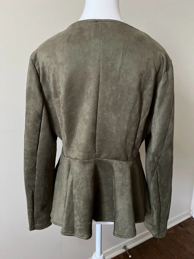 Stylish olive green peplum jacket.