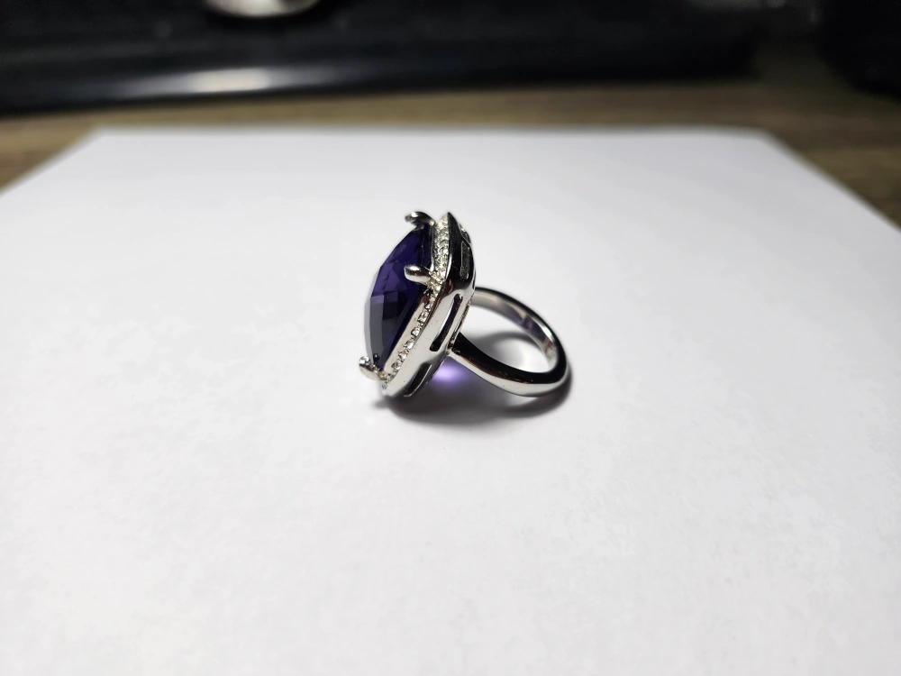 Vintage Amethyst Ring Princess Purple Cut Faux With Crystal Rhinestones Silver Toned Metal Ring, Amethyst Gemstone, a perfect Christmas Gift.