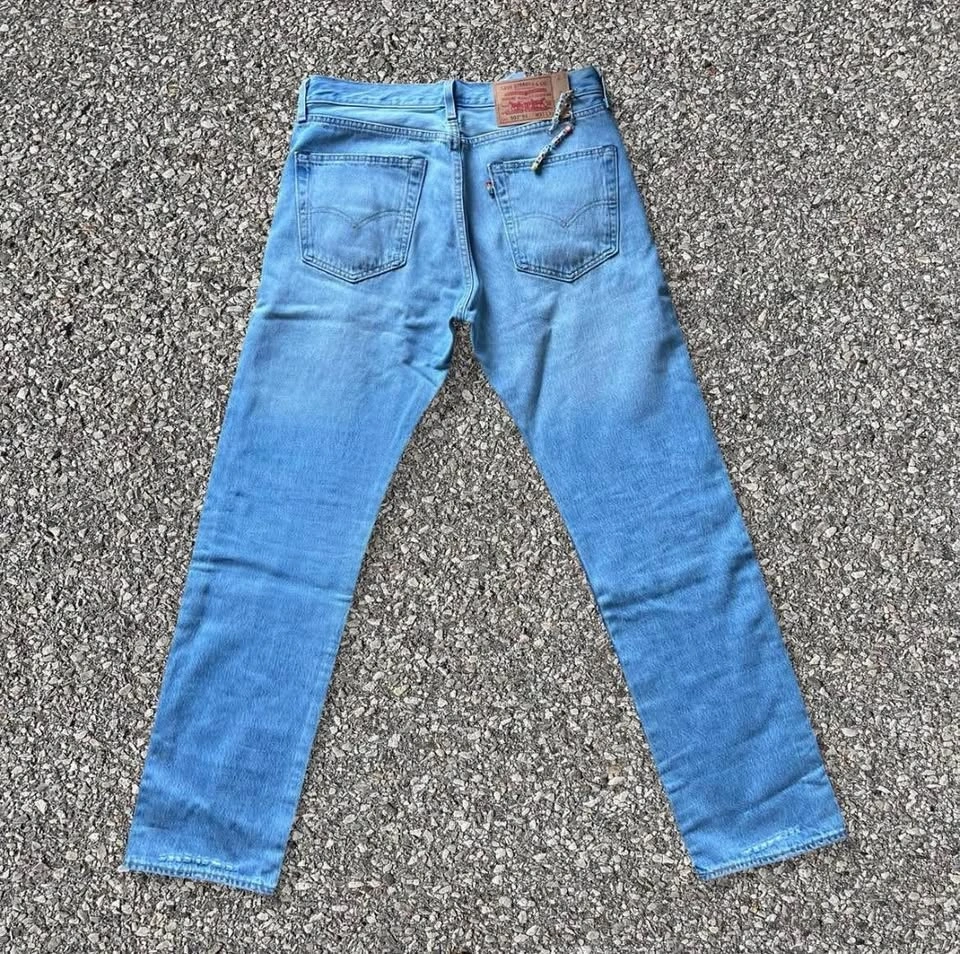 These 501® '93 jeans elevate a beloved vintage fit with Pride embellishments: a subtle transgender flag on the wearer's left thigh, a rainbow Levi's® tab, Back Leather Patch with a charm and a special pearl-center shank up front.