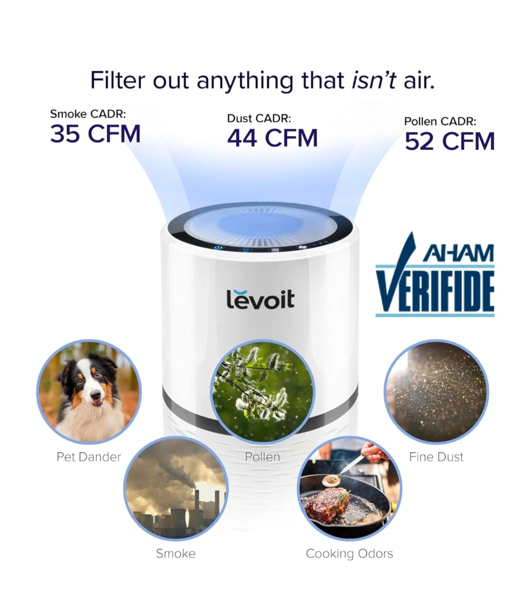 Keep your air clean with this Levoit LV-H132 air purifier! It's great for filtering out pet dander, pollen, fine dust, smoke, and even cooking odours. It also has an optional night light and is energy efficient! Good condition, lightly used and well maintained. Retail price 139.99 on Amazon. Pick up Leslie/Hwy 7 or East Markham.