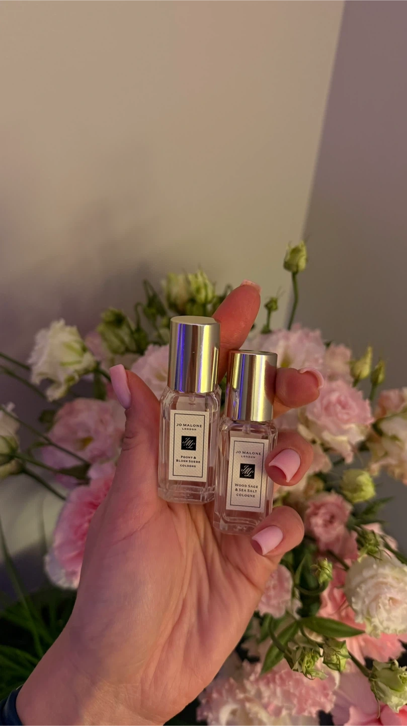 Travel-sized Jo Malone London cologne Peony & Blush Suede scent. Size is 9 mL.