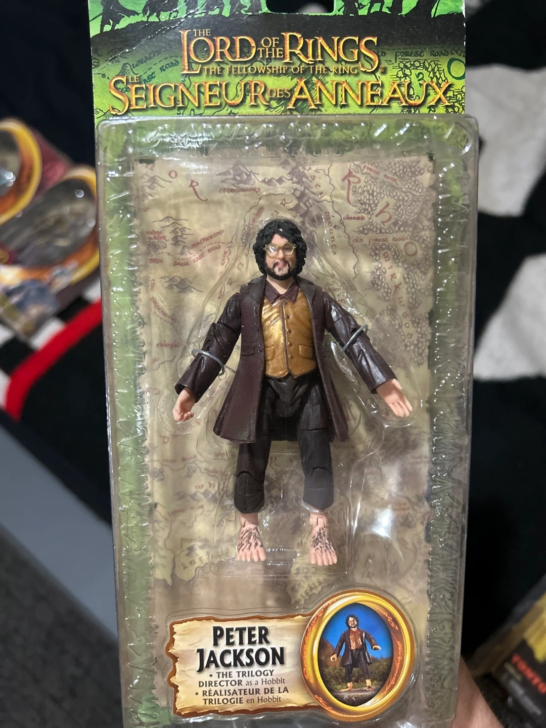 Selling a Lord of the Rings action figure of Peter Jackson, the director of the trilogy! It's still in its original packaging.