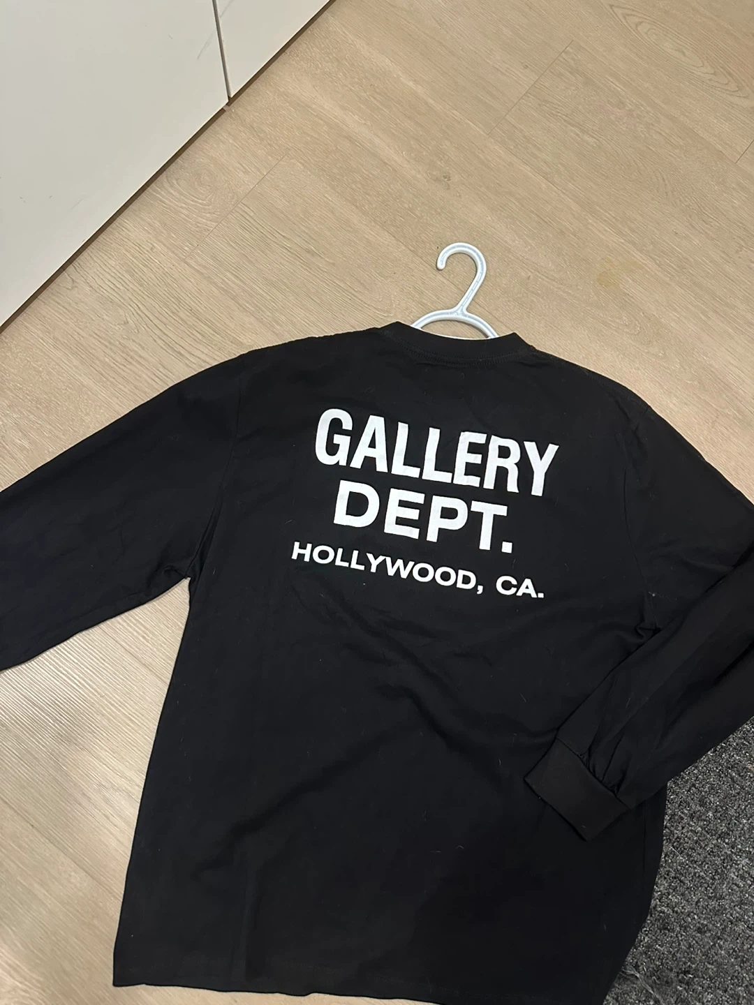 Selling a black long-sleeve shirt from Gallery Dept. It's in great condition and features the brand's logo on the front and back. Perfect for a casual, stylish look!