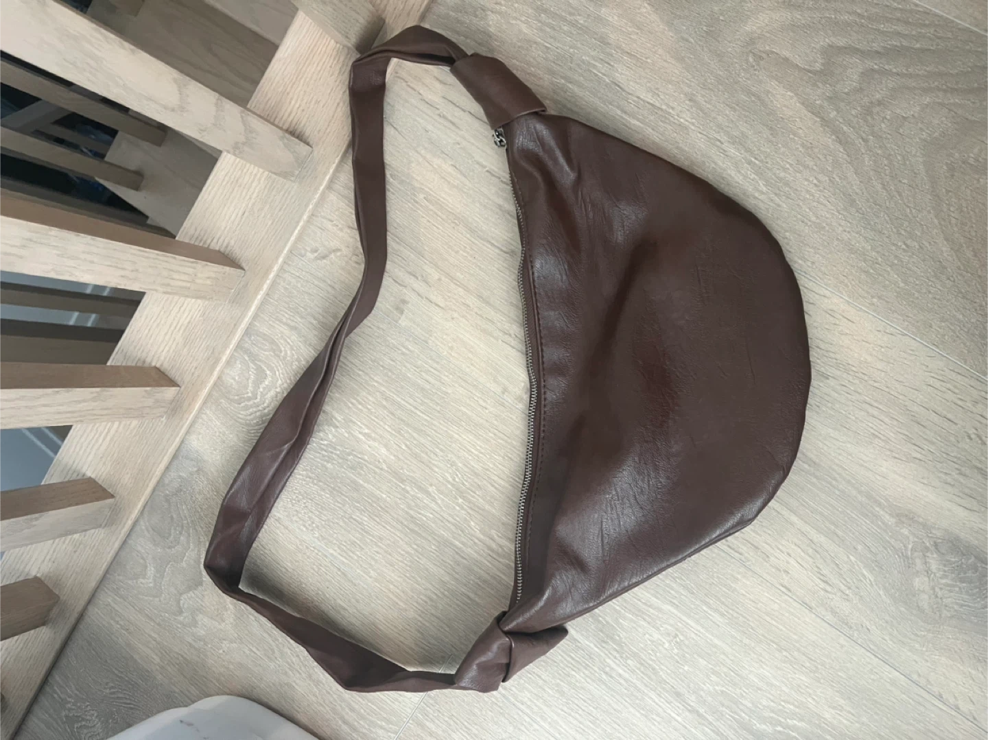 Selling a stylish brown leather shoulder bag. It's in great condition and perfect for everyday use. The bag has a zipper closure and a comfortable shoulder strap.