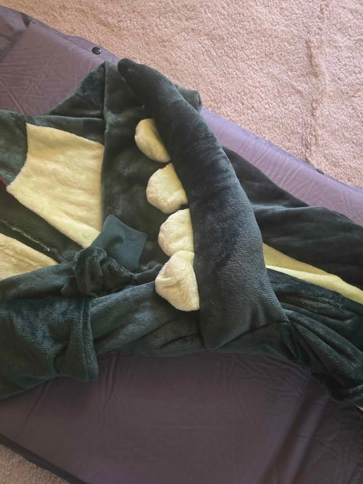 Super soft and cozy plush dinosaur onesie with hood, tail, and fun teeth details β perfect for Halloween, themed parties, or lounging at home! Features button-up front and elastic cuffs for comfort.